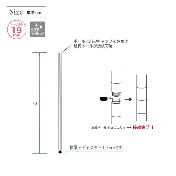 ルミナス luminous スチールラック ラック スチール製 19mm /高さ70cm基本ポール4本組 PHT-0070SL-2