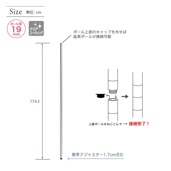 スチールラック パーツ ルミナス 延長ポール 長さ174.5cm 4本 19mm 19P173-4