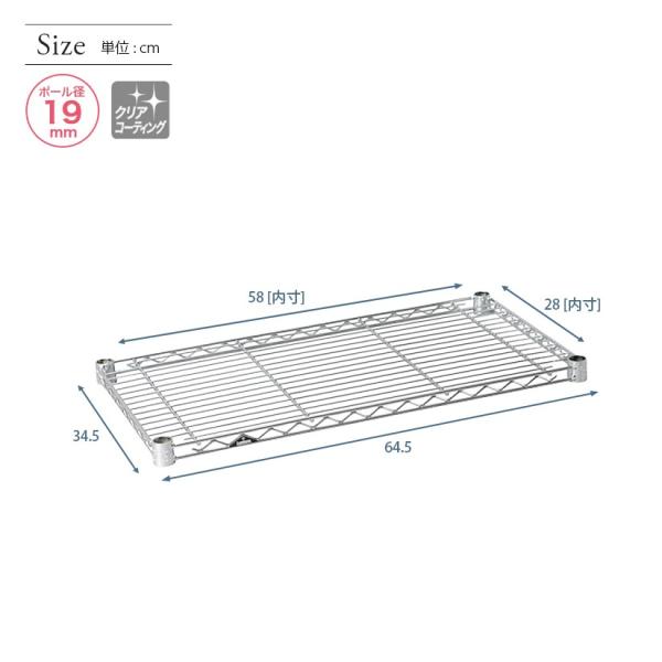 スチールラック パーツ シェルフ 棚板 ルミナス (19mm) スチール棚 幅65 幅64.5×奥行34.5cm スリーブ付 ST6535