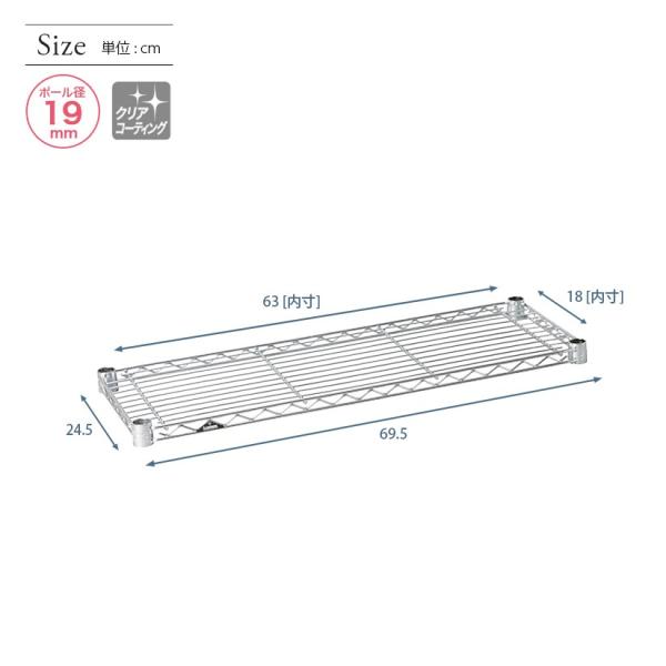スチールラック パーツ シェルフ 棚板 ルミナス (19mm) 幅70 幅69.5×奥行24.5cm スリーブ付 ST7025
