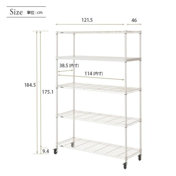 ■サイズは約 幅120 奥行46 5段/棚耐荷重120kg 整理収納に最適。