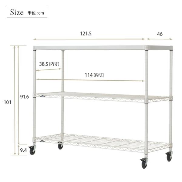 ■サイズは約 幅120 奥行46 3段 /棚耐荷重120kg 整理収納に最適。