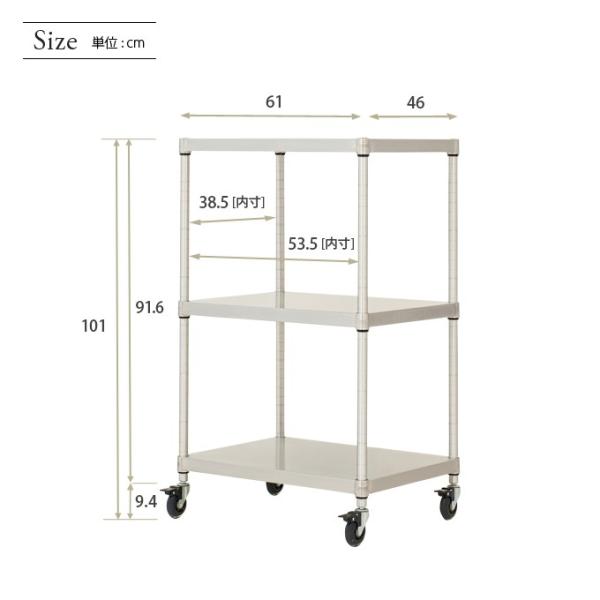■サイズは約 幅60 奥行46 3段 /棚耐荷重120kg 整理収納に最適。