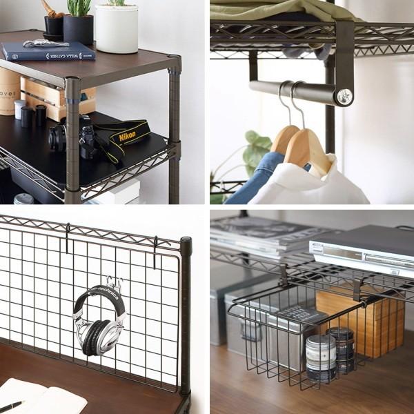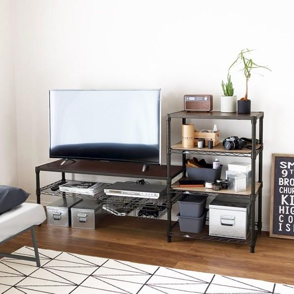 黒過ぎないアーバンブラックがかっこいいインテリア収納ラックです。ラックセット+パーツ追加で好みのインテリア収納ができます。