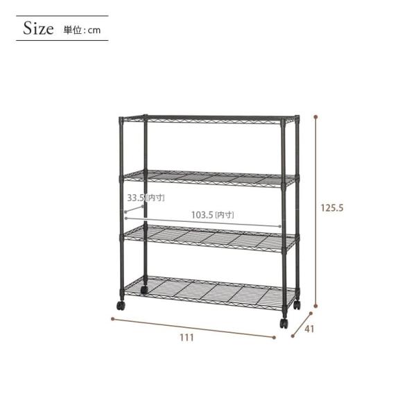 ルミナス スチールラック ノワール 黒 ラック 幅110 奥行40 4段 アルミ おしゃれ 防錆 25mm 棚 収納 本棚 キャスター 粉体塗装 NO1112-4