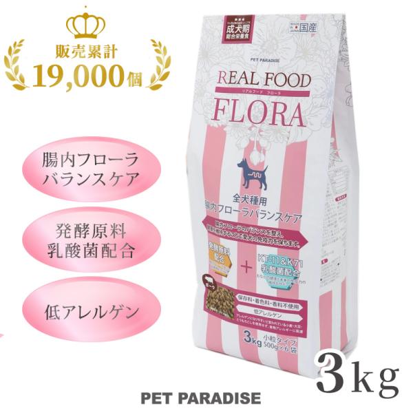 ドッグフード 国産 犬 ドライフード リアルフードフローラ 3kg (500g×6袋) | アレルギー対応 乳酸菌 小粒 シニア お腹の調子を整える