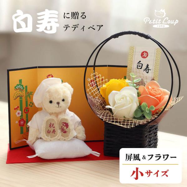 白寿のお祝い 花 ソープフラワー 白寿のお祝いの品 白寿 プレゼント 父 父 祖父 祖父 ちゃんちゃんこ 90代 99歳 白寿ベア(屏風 ソープフラワー)