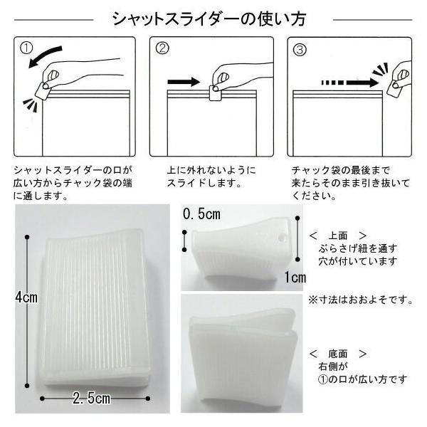 シャットスライダー 3個入り ネコポス便 送料無料 代引き不可 閉めづらい チャック 袋 を 閉めやすくする お助けグッズ ジッパー ジップ