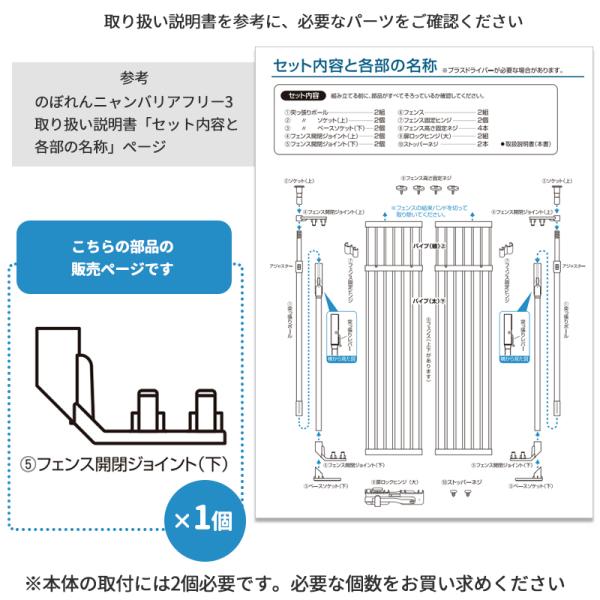 (本体別売) (交換部品) のぼれんニャン バリアフリー3 /スリム 専用 フェンス開閉ジョイント(下) 1個入(新旧対応品)