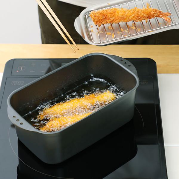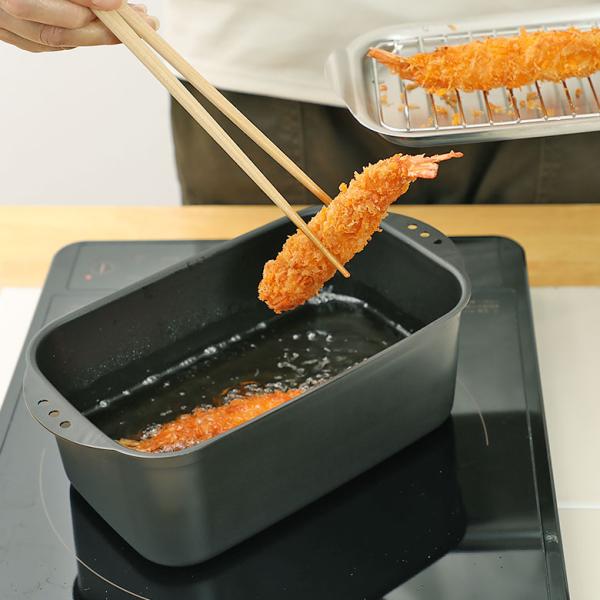 ミニミニ天ぷら 角型 揚げ物鍋 アミ・フタ付 スクエア ミニ天ぷら鍋 燕三条 コンパクトフライヤー ミニ揚げ鍋 爆買