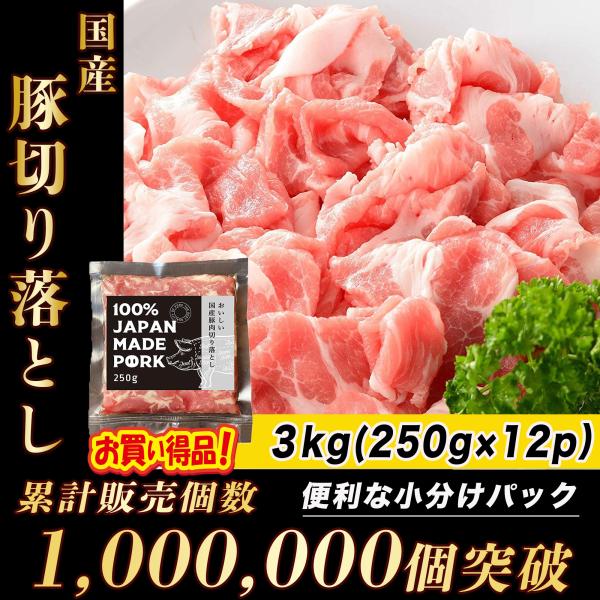 国産 豚肉 小分け パック ご自宅用 真空包装 冷凍 豚こま肉 長期保存 切り落とし肉 3kg(250g ×12パック) 真空パック こま 切り落とし 非常食 一人暮らし