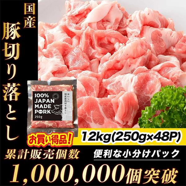 国産 豚肉 小分け パック ご自宅用 真空包装 冷凍 豚こま肉 長期保存 切り落とし肉 12kg(250g ×48パック) 真空パック こま 切り落とし 非常食