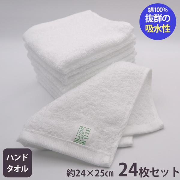 ハンドタオル 日本製 泉州タオル (24×25cm) 24枚セット ホワイト 吸水 速乾 綿100% 肌にやさしい