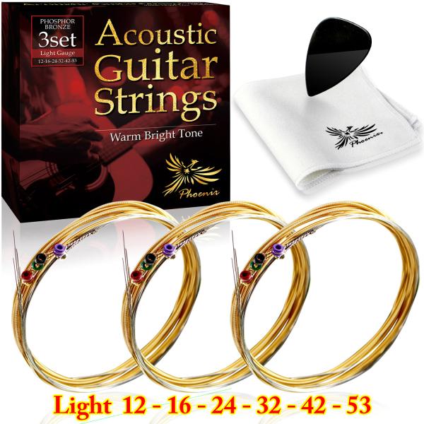 お試し Phoenix アコースティック ギター 弦 フォスファーブロンズ PHOSPHOR_BRONZE Warm Bright Tone 3set ドンシャリ感 /アコギ弦 ライト