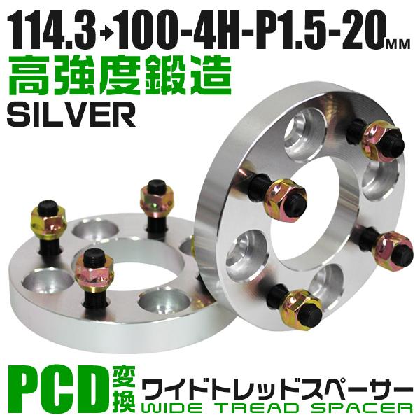 ワイドトレッドスペーサー Durax正規品 PCD変換 114.3→100-4H-P1.5-20mm 銀 4穴のPCD114.3mmからPCD100mm ホイールスペーサー