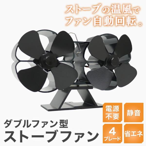 ストーブファン エコファン ダブルファン 電源不要 省エネ 静音 小型 火力ファン 石油ストーブ 薪ストーブ 灯油ストーブ 冬キャンプ