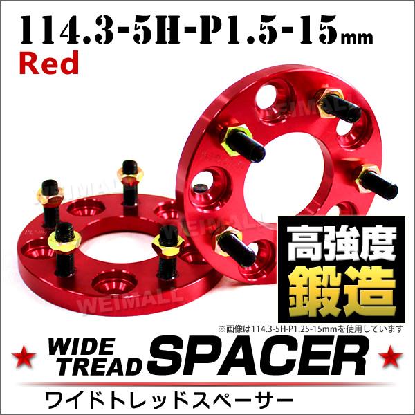 ワイドトレッドスペーサー Durax 正規品 114.3-5H-P1.5-15mm ナット 赤 2A スペーサー 5穴 トヨタ 三菱 ホンダ マツダ ダイハツ 2枚セット