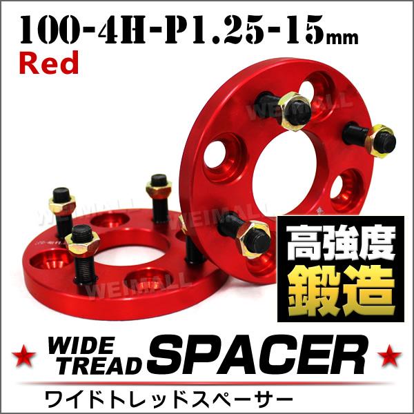 ワイドトレッドスペーサー Durax正規品 100-4H-P1.25-15mm ナット 赤 7A 4穴 ホイールスペーサー スペーサー スズキ スバル 2枚セット