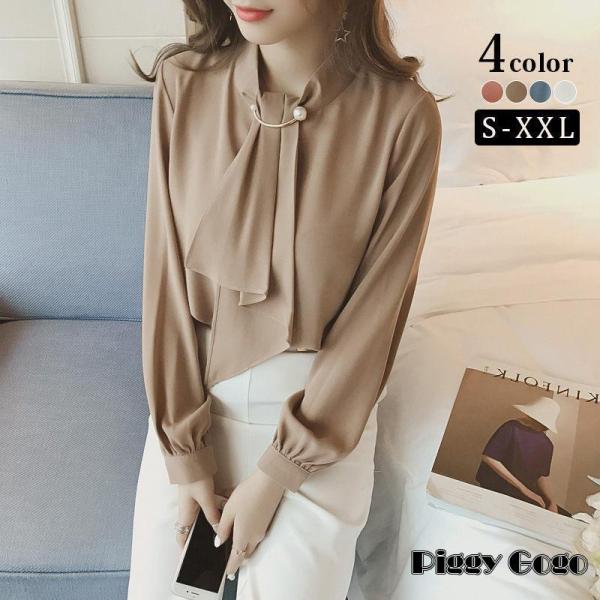 ブラウス レディース ボウタイ スカーフ タイ スーツ インナー トップス 長袖 透けにくい 大きいサイズ 小さいサイズ 通勤服 大人 会社 オフィス ビジネス