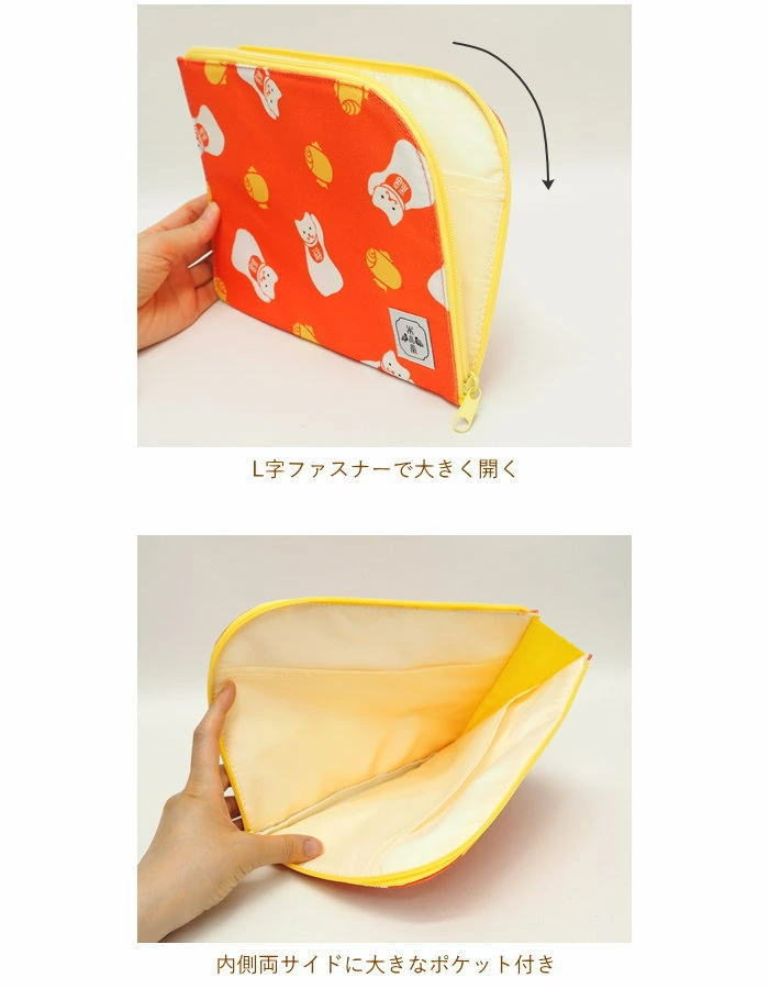 ●L字ファスナーで大きく開き、大判サイズの御朱印帳が2冊まで収納可能です。神社用、お寺用と分けている方も一緒に持ち歩けます。ケース内部には両サイドに大きなポケットがあり、書き置きの朱印やおみくじ、チケット、レシートなどが入ります。
