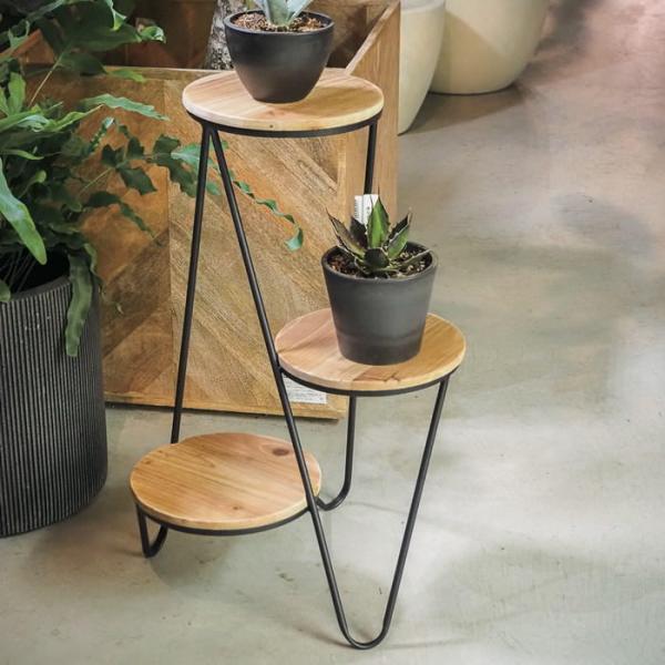 フラワースタンド 室内 3段 おしゃれ 玄関前 木製 アイアン 花台 プランタースタンド
