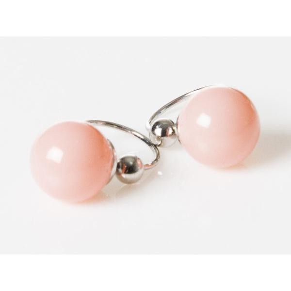 レディースファッション パールビーズ ピアス イヤーカフ イヤリング クリップ式 挟むタイプ 2個セット#オレンジピンク