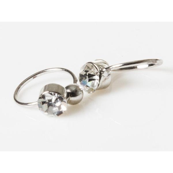 レディースファッション カラフル ラインストーン ピアス イヤーカフ イヤリング クリップ式 挟むタイプ 2個セット#ホワイト