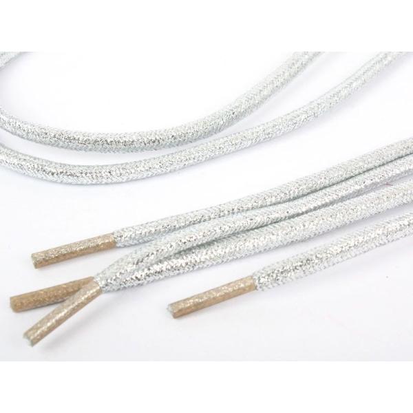 スニーカー スポーツシューズに最適 ラメシューレース 厚みのある丸紐 靴紐 靴ひも#銀色