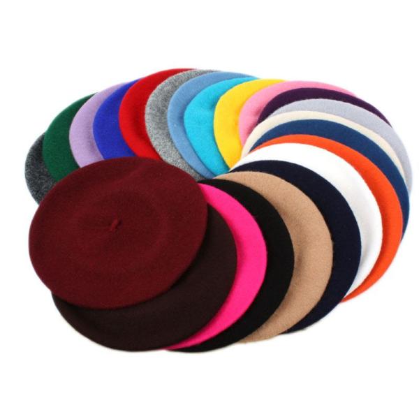 男女兼用 ベレー帽子 四季対応 ウール混 ニット帽子#ブラック