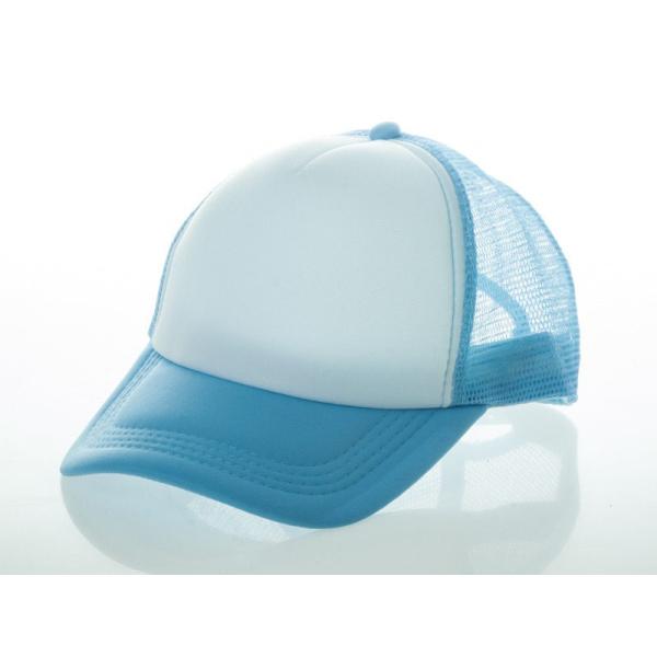 アールつば 無地 カジュアル 調節可能 通気性 網目 ベースボールキャップ 野球帽 帽子#空色×白