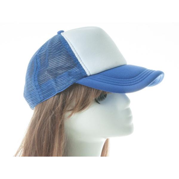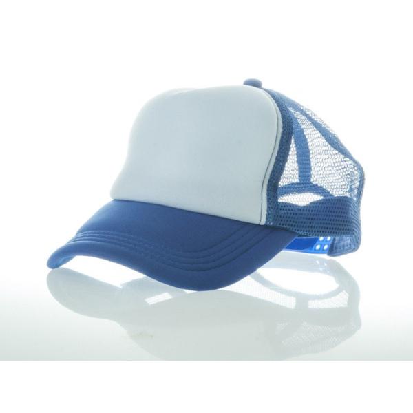 アールつば 無地 カジュアル 調節可能 通気性 網目 ベースボールキャップ 野球帽 帽子#青×白