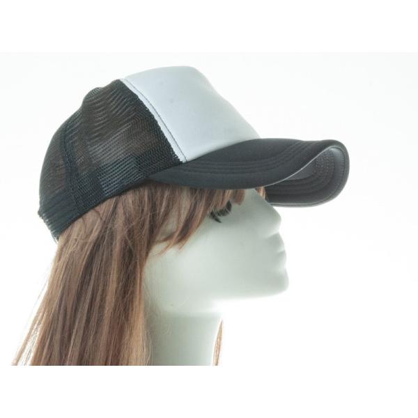 アールつば 無地 カジュアル 調節可能 通気性 網目 ベースボールキャップ 野球帽 帽子#黒×白