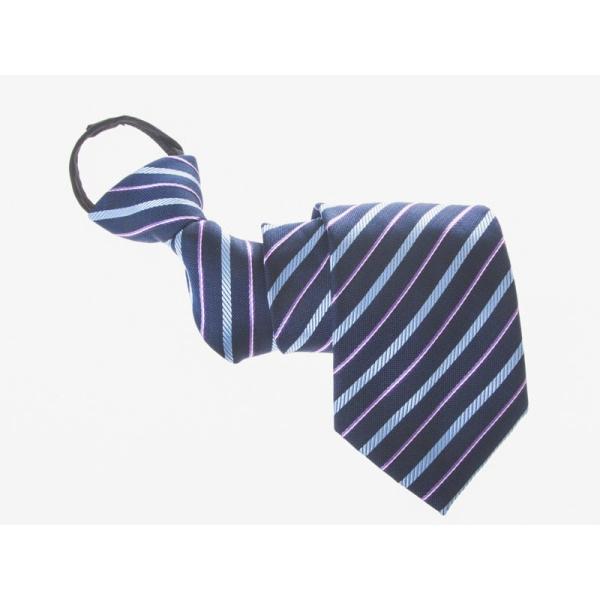 正装 ジッパー式 ワンタッチネクタイ ファスナーネクタイ クイックネクタイ ビジネス系#縞柄 紺色C