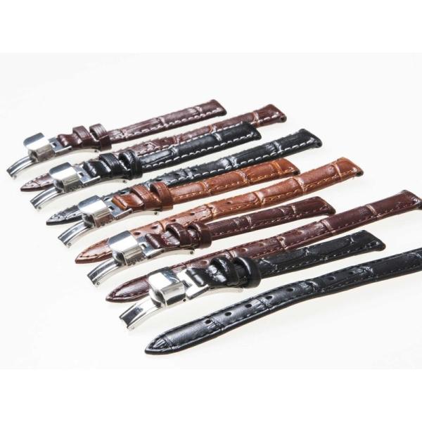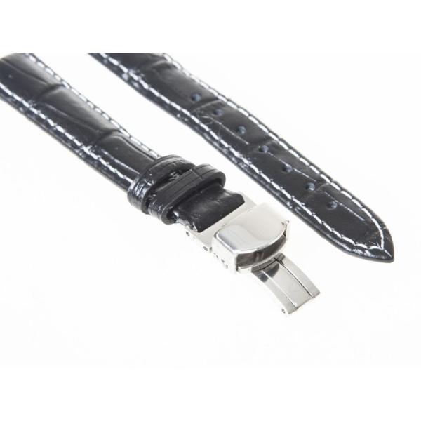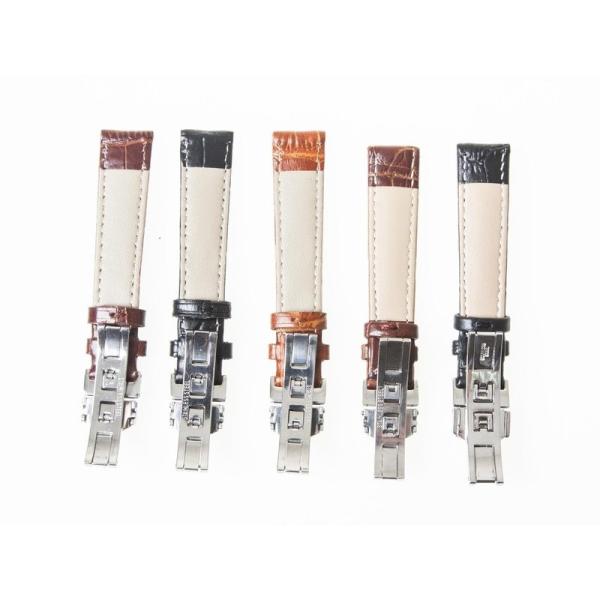 汎用 本革 ワニ革風仕上げ 腕時計 ベルト ブレスレット バンド 交換用#幅22mm ブラック+ホワイトライン