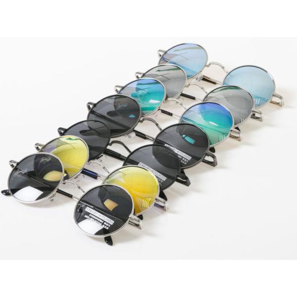 伊達メガネ 偏光サングラス 丸眼鏡 収納ポーチ付#シャンパンゴールドレンズ