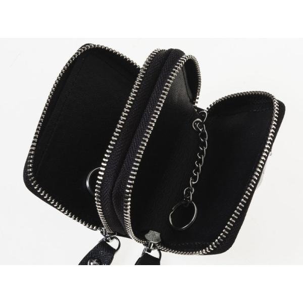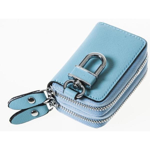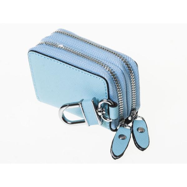 本革 上質感 ダブルジッパー ファスナー キーケース フック付き#スカイブルー