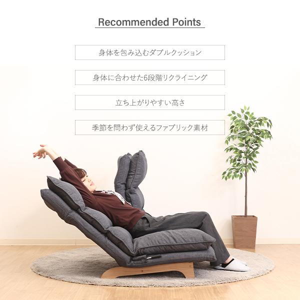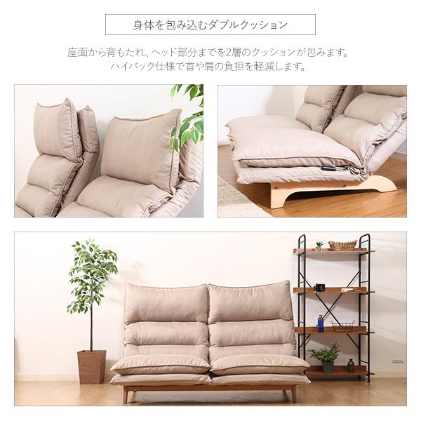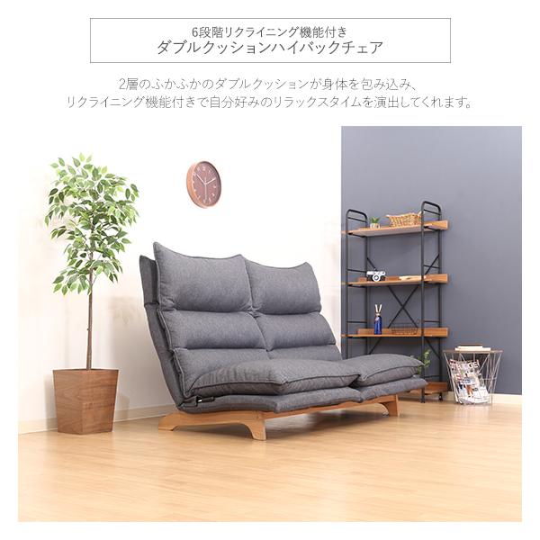 ダブルクッションハイバックチェア2P リクライニングチェア 布製 ファブリック ベージュ ダークグレイ ローチェア クッションチェア 座椅子 2人掛け