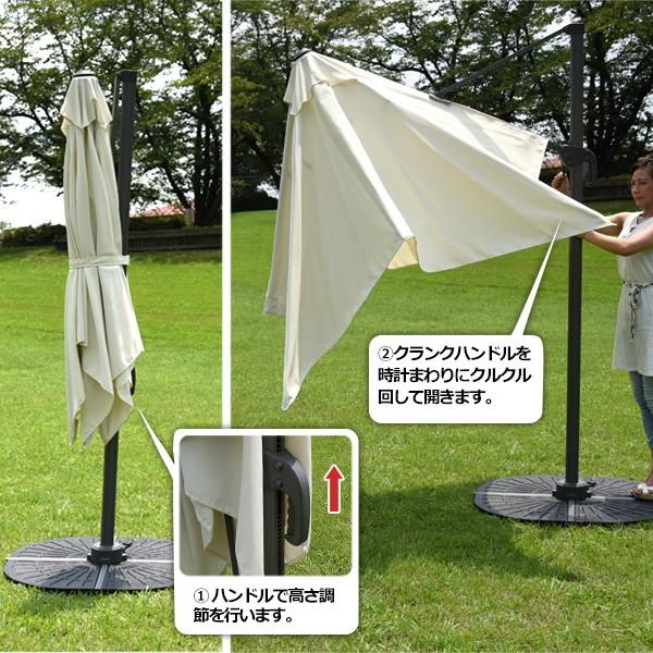 ハンギングパラソル パラソル ベース付き パラソルセット アルミパラソル パラソル ガーデン家具 ガーデニング ガーデンファニチャー アウトドア 野外活動 節電対策 暑さ対策 UV対策 パラソル 日よけ アイボリー 角度が変わる クランク開閉 日陰 UVカット UVカット 紫外線 対策