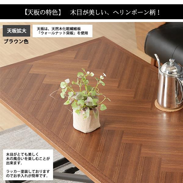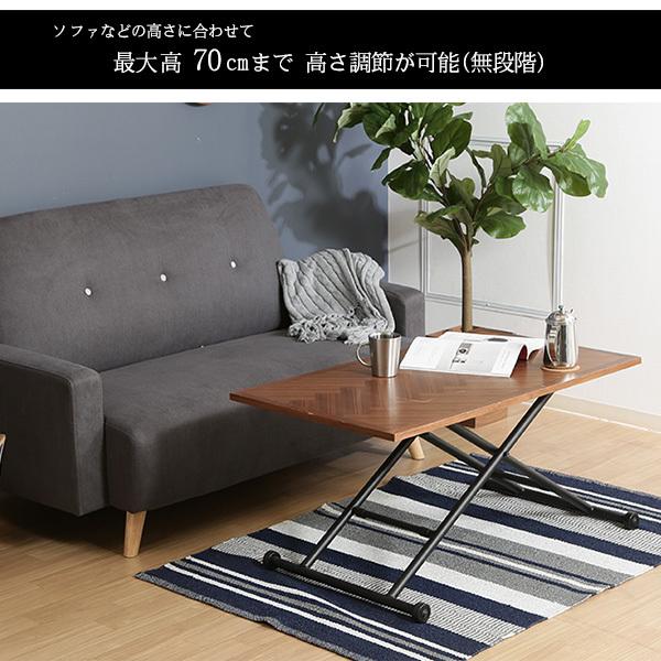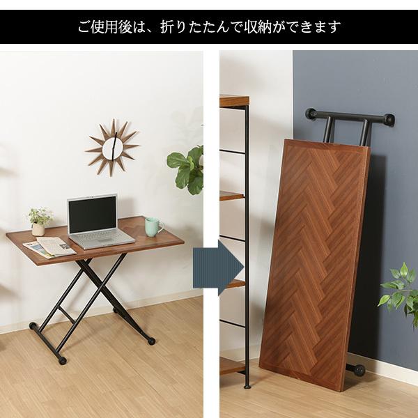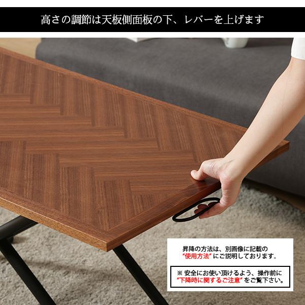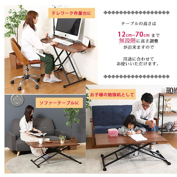 昇降テーブル 幅100〜115 伸縮調節レバー 無段階 高さ12〜70cm テレワーク フレーム リフティングテーブル 折りたたみ ウォルナット突板 ブラウン色 新生活