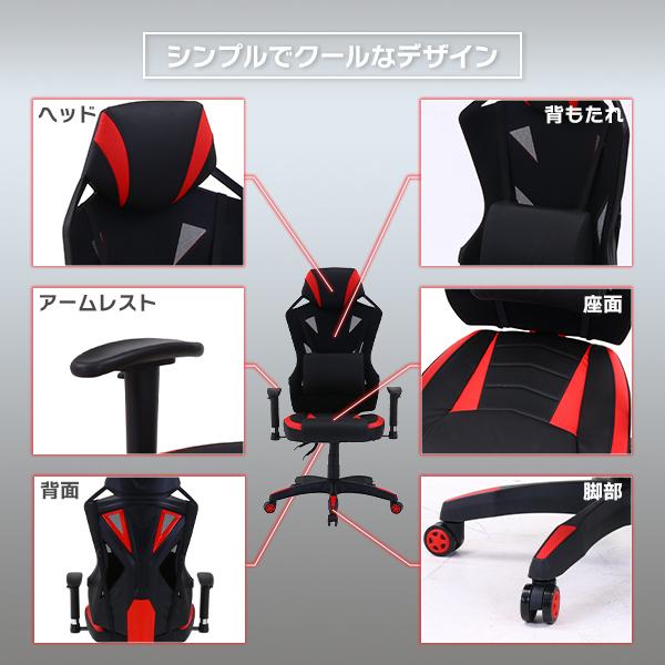 メッシュゲーミングチェア ノーマルタイプ オフィスチェア パソコン PC ゲーム ゲーミングインテリア デスクワーク 在宅ワーク テレワーク レッド ブルー