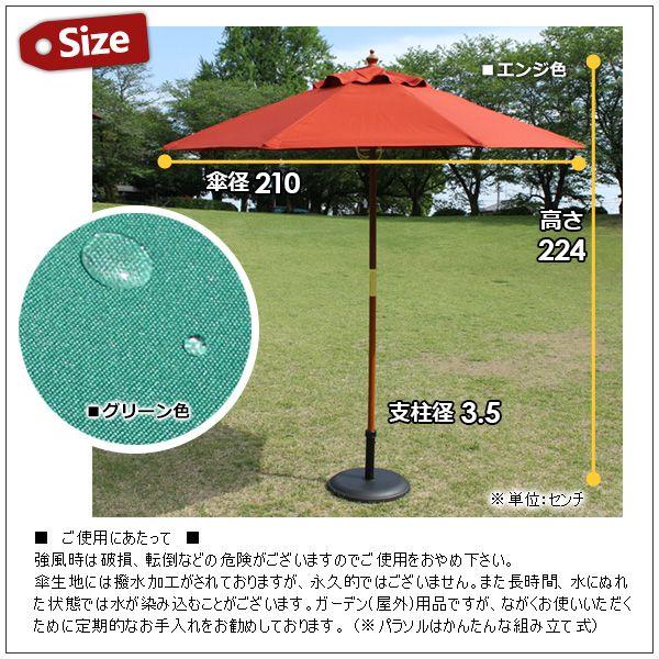 ガーデンパラソル 木製 210cm パラソル 日よけ UVカット 日傘 おしゃれ 赤 青 緑 白 茶 大型 新生活