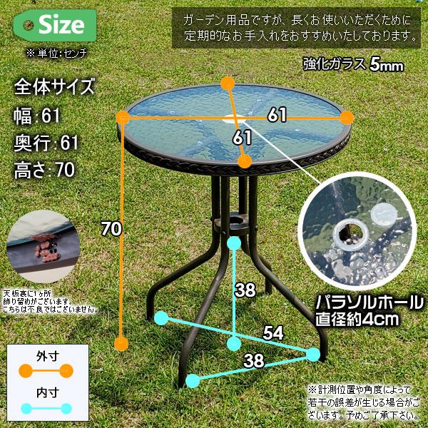 ガーデンテーブル ラウンドテーブル ガラステーブル 幅60 アウトドア 屋外用 強化ガラス ラタン調 フラワーショップ カフェ 店舗 サービスエリア パーキングエリア ガーデンパラソルセット