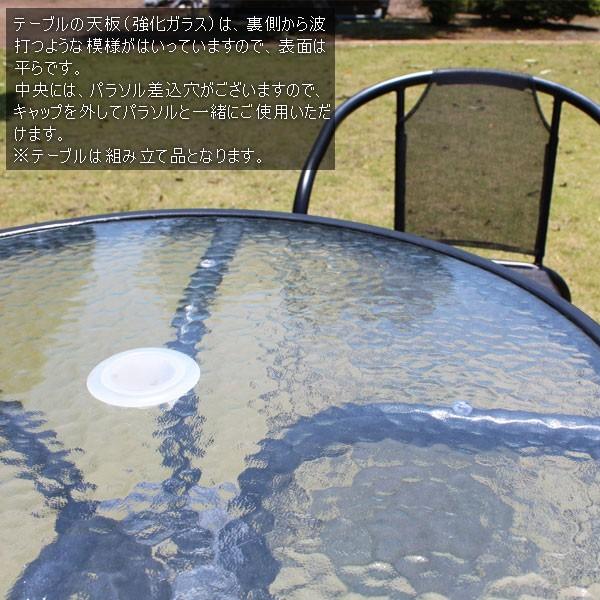 ガーデンテーブルセット ガーデンテーブル5点セット スチール製 軽量 ガラステーブル パラソル対応 ラウンドテーブル ブラック 新生活