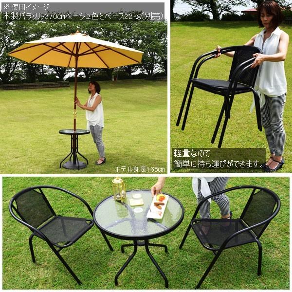 ガーデンテーブル ラウンドテーブル ガラステーブル 幅60 ガーデンチェア アウトドアチェア 4脚 スタッキング 積み重ね アウトドア 屋外用 強化ガラス ブラック 黒 フラワーショップ カフェ 店舗 サービスエリア パーキングエリア ガーデンパラソルセット