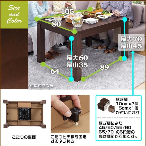 こたつテーブル 長方形 105×80cm 6段階高さ調節機能 ブラウン 新生活