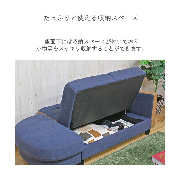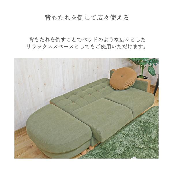 コンパクト カウチソファー 収納付 オットマン付 2Pソファー 2人掛けソファー クッション付 ソファー 二人掛けソファー ネイビー グリーン