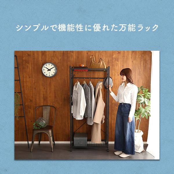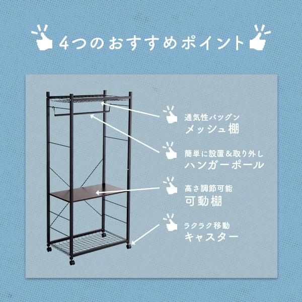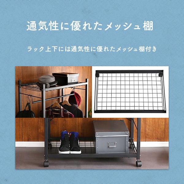 ハンガーラック 75cm幅 ブラック 棚付き 可動棚 メッシュ棚 キャスター付き コートハンガー 収納 多機能 オシャレ シンプルデザイン カスタム 新生活