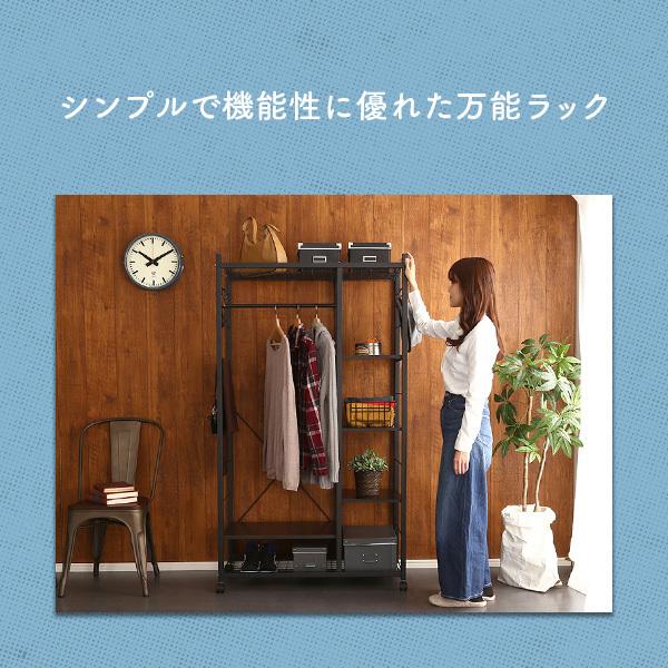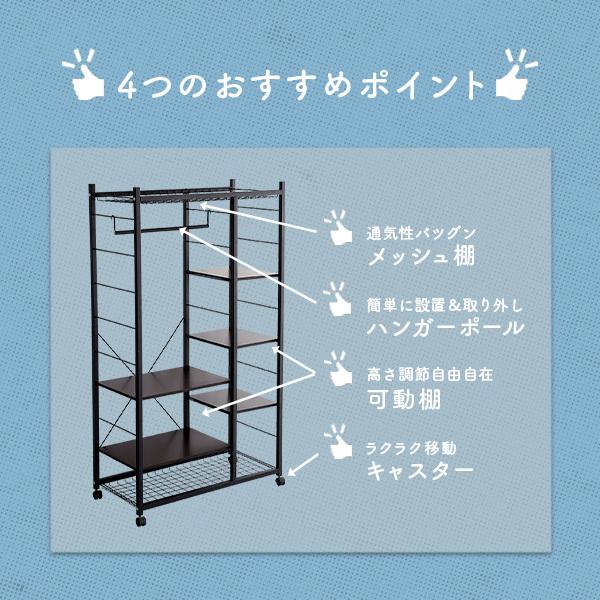 ハンガーラック 88cm幅 ブラック 棚付き 可動棚 メッシュ棚 キャスター付き コートハンガー 収納 多機能 オシャレ シンプルデザイン カスタム 新生活