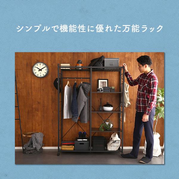 ハンガーラック 119cm幅 ブラック 棚付き 可動棚 メッシュ棚 キャスター付き コートハンガー 収納 多機能 オシャレ シンプルデザイン カスタム 新生活
