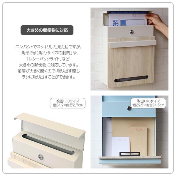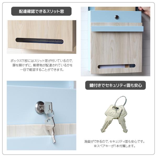 壁掛けメールボックス 鍵付き 木目調 シリンダー錠 スリット窓 防犯 盗難防止 メールボックス ポスト シンプルデザイン